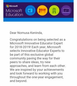 CONGRATULATIONS to Nomusa Keninda for being selected as a Microsoft Innovative Educator Expert for 2018 – 2019. Very well deserved.